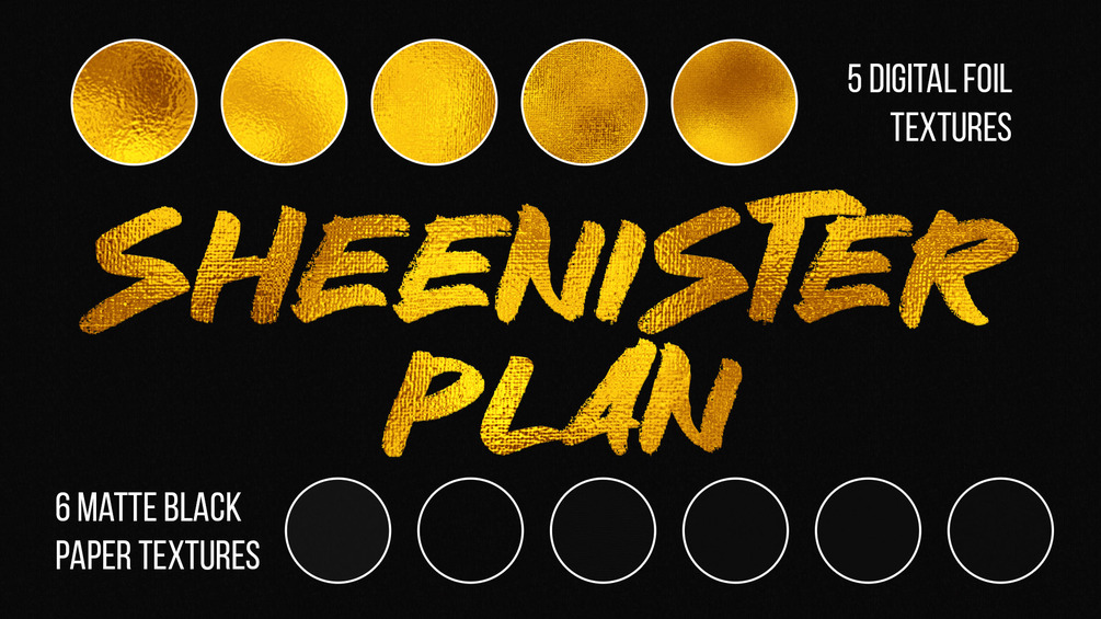 Get 5 unique hot foil stamp effect Photoshop layer styles and 5 seamless metallic foil textures in 3 colors—Gold, Rose Gold & Silver.